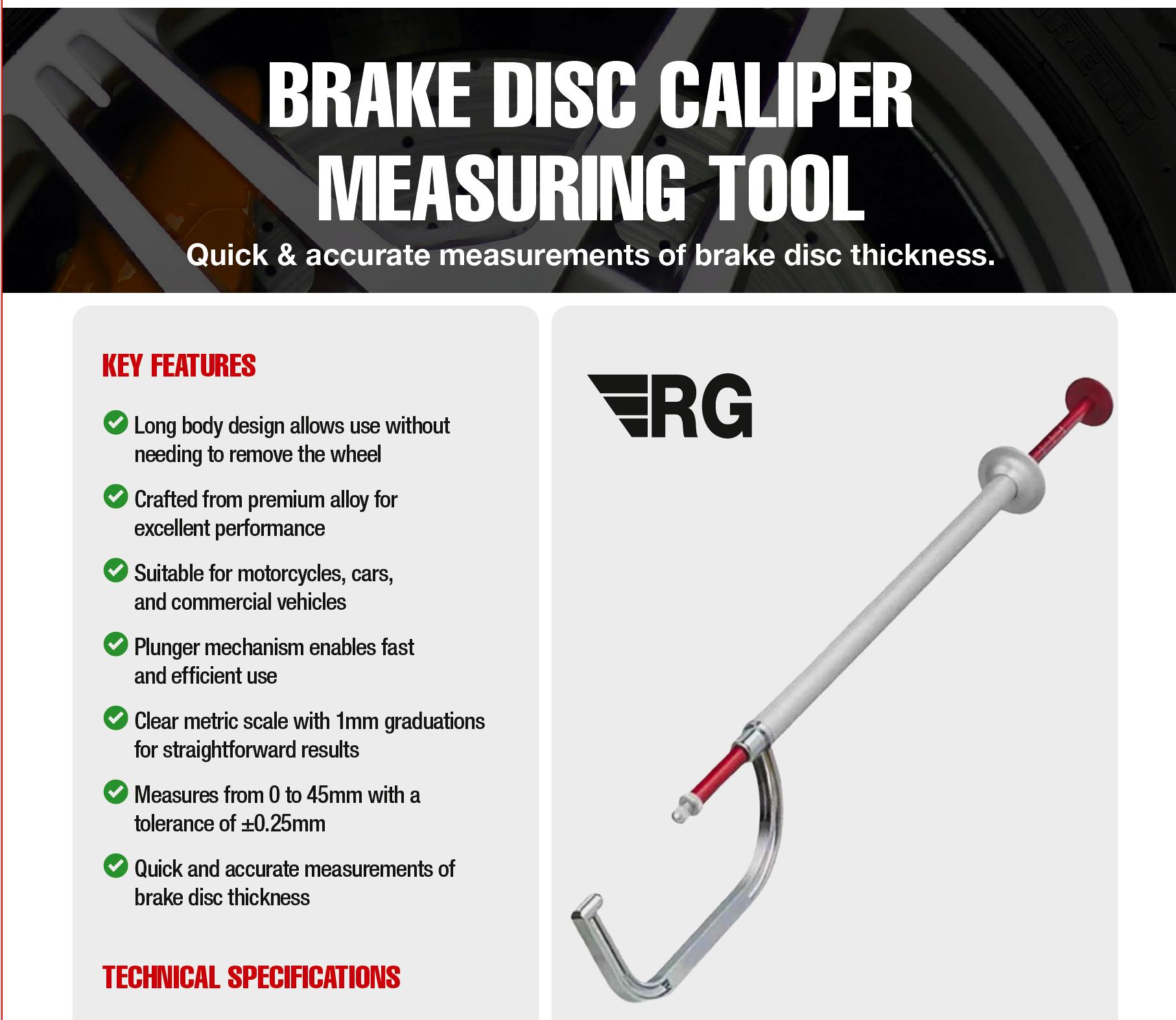 RG 10345 Brake Calliper Flyer RG BRake Caliper Tool_WC_51_FST See also different: CoSHH Cabinets All New Ultra Grime Pro Wipes Assets De-Ionised Water A4 Leaflet << return to listing